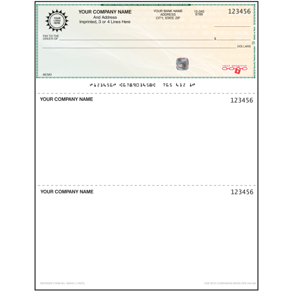 088HS High Security Check SKU: 088HS $0.29 Select options Back $0.29 REPEAT, NEW, OR REPEAT WITH CHANGES ? : Repeat New Repeat With Changes Prior Job# Reverse Numbering : No Yes Check Start Number Number of Signature Lines : NONE 1 2 3 Special Instructions COLOR: Company Information Line 1 Company Information Line 2 Company Information Line 3 Address Line 1 Address Line 2 City State Zip Phone Fax Email Bank Name Bank Address Bank Address 2 Routing Number Account Number Imprint Below Signature Line Title Above Signature Line Text on Check Stub SELECT LOGO COLOR : Black Reflex Blue Process Blue Teal (PMS 320) Green (PMS 348) Green (PMS 347) Brown (PMS 464) Maroon (PMS 201) Burgundy (PMS 208) Warm Red Red (PMS 185) Orange (PMS 151) Gray (PMS 423) Custom Color Logo & Options : $0 - Color Logo $68 - Black Logo $90 - Color Logo No Charge - 1 Color Logo No Charge - Black Logo EZ-Shield : No Yes Quantity -+ Please select options before adding to cart Add to Cart Add to Cart