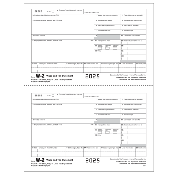 5204B W-2 Copy D - 500 Pack SKU: 5204B $110.19 Prior Job# Special Instructions Logo & Options : $0 - Color Logo $68 - Black Logo $90 - Color Logo No Charge - 1 Color Logo No Charge - Black Logo Quantity -+ Please select options before adding to cart Add to Cart Add to Cart
